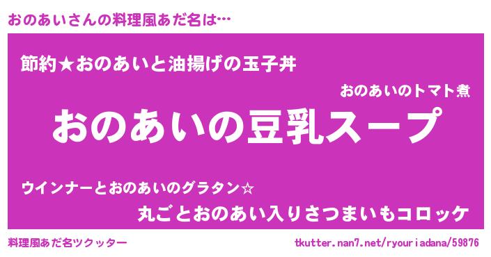 | 胡散臭い通販商品みたいなあだ名 | 『信頼と実績のサプリメント…その名も「おのあい」』 |