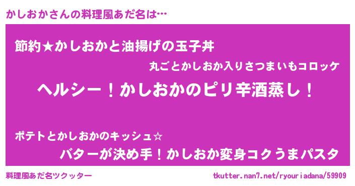| 女子向けラノベタイトル風あだ名 | 『闇のかしおか』『かしおか恋絵巻』 |