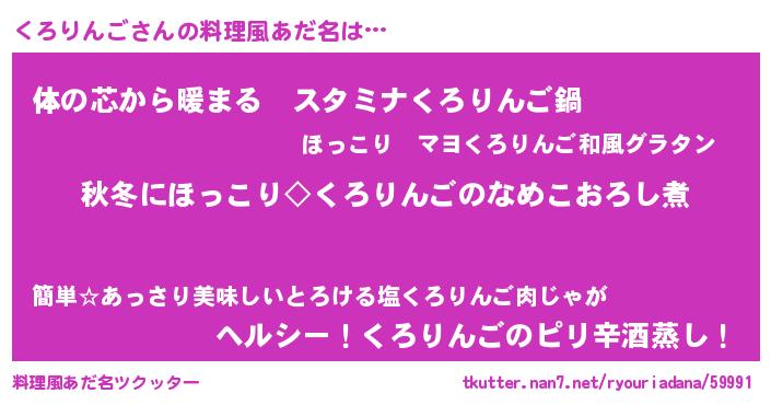| 男性向けラノベタイトル風あだ名 | 『くろりんごに滅ぼされるだけの簡単なお仕事です』 |