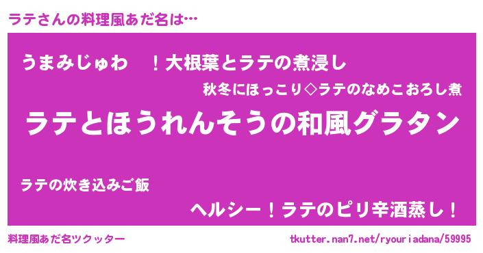 | ポケモン風あだ名 | 『ラテキング』『ラテダネ』 |