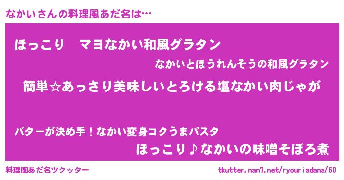 | 意味不明あだ名 | 『永久保存なかい』『ペロリンなかい』 |