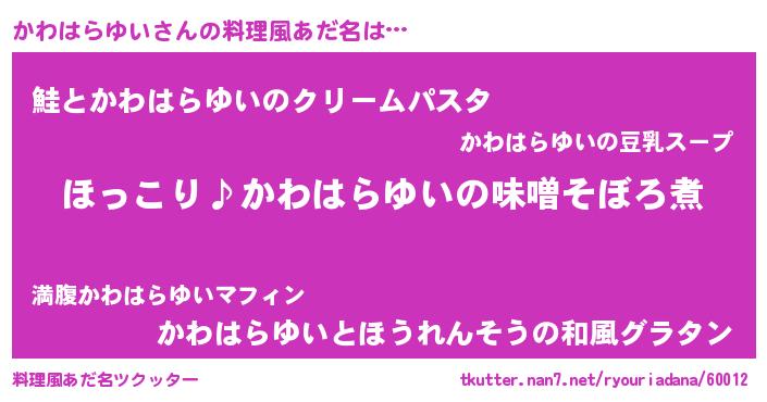 | 胡散臭い通販商品みたいなあだ名 | 『必ず成功する水晶球…その名も「かわはらゆい」』 |