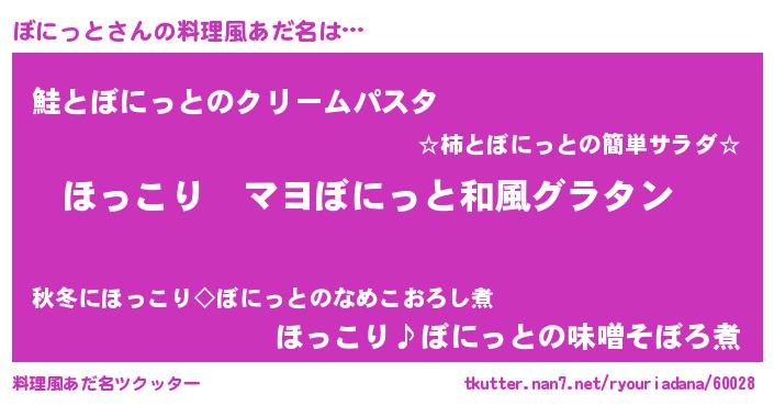 | 男性向けラノベタイトル風あだ名 | 『この素晴らしい世界にぼにっとを!』 |