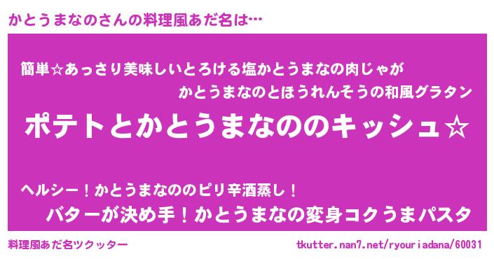 | 胡散臭い通販商品みたいなあだ名 | 『伝統あるサプリメント…その名も「かとうまなの」』 |