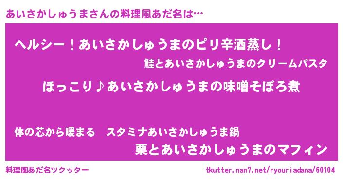 | 胡散臭い通販商品みたいなあだ名 | 『必ず成功する霊験あらたかなお札…その名も「あいさかしゅうま」』 |