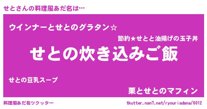| 意味不明あだ名 | 『せとフォーエバー』『ペロリンせと』 |