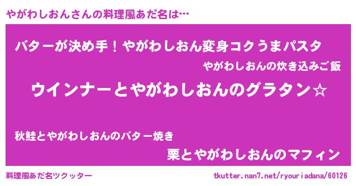 | 欧米人風あだ名 | 『やがわしおんクリステル』 |