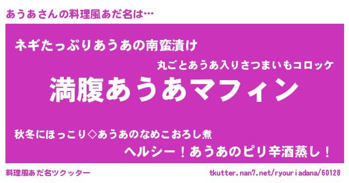 | 意味不明あだ名 | 『永久保存あうあ』『ペロリンあうあ』 |