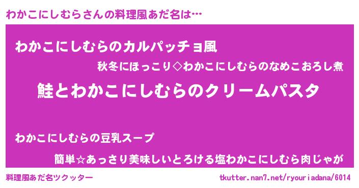 | ヘコむあだ名 | 『わかこにしむら(笑)』『わかを』 |