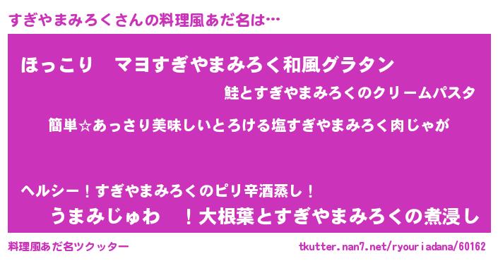 | ヘコむあだ名 | 『すぎやまみろく(遠い目)』『酢こんぶ』 |