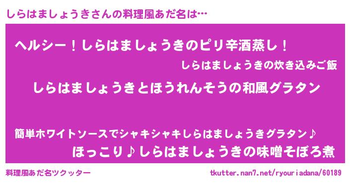 | 男性向けラノベタイトル風あだ名 | 『しらはましょうき~年齢イコール彼女いない歴の魔法使い~』 |