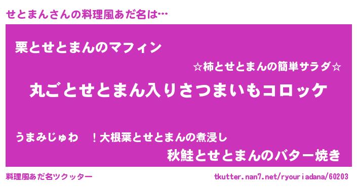 | 意味不明あだ名 | 『住所不定無職せとまん(89歳)』 |