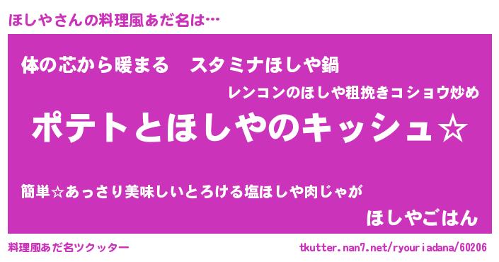| ポケモン風あだ名 | 『ヒホシヤ』『ホシヤダネ』 |