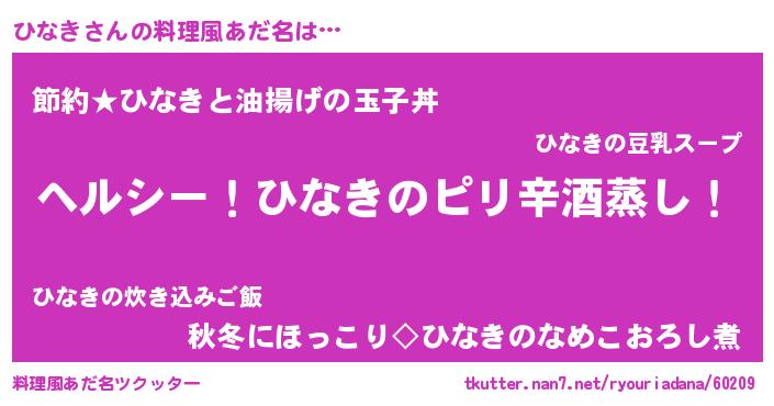 | ヘコむあだ名 | 『ひなふぇ~』『ひな太郎』『つくし』 |