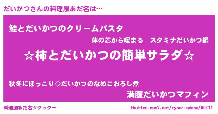 | ヘコむあだ名 | 『だいかつ(苦笑)』『牛乳』『だいを』 |