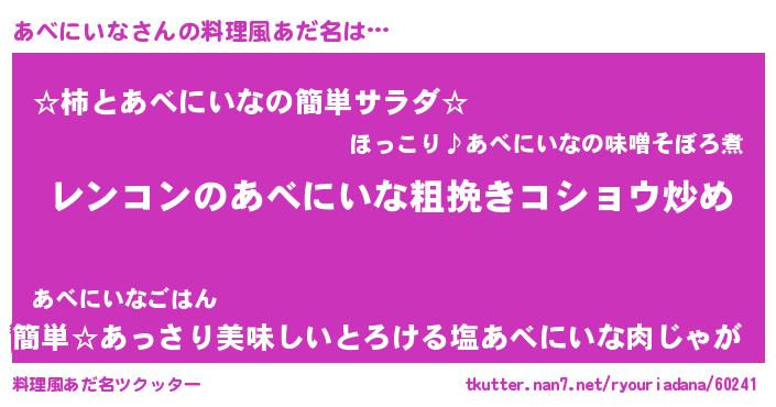 | 意味不明あだ名 | 『自称あべにいな』『永久保存あべにいな』 |