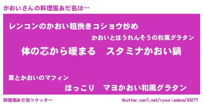 | 2回繰り返すあだ名 | 『かかおお』『むしゃむしゃ』 |