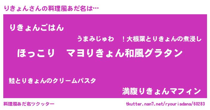 | 男性向けラノベタイトル風あだ名 | 『この素晴らしい世界にりきょんを!』 |