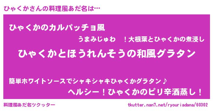 | 意味不明あだ名 | 『ヨモギ科ひゃくか属』『自称ひゃくか』 |