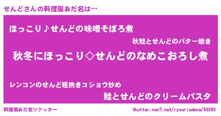 | 男性向けラノベタイトル風あだ名 | 『せんどに滅ぼされるだけの簡単なお仕事です』 |