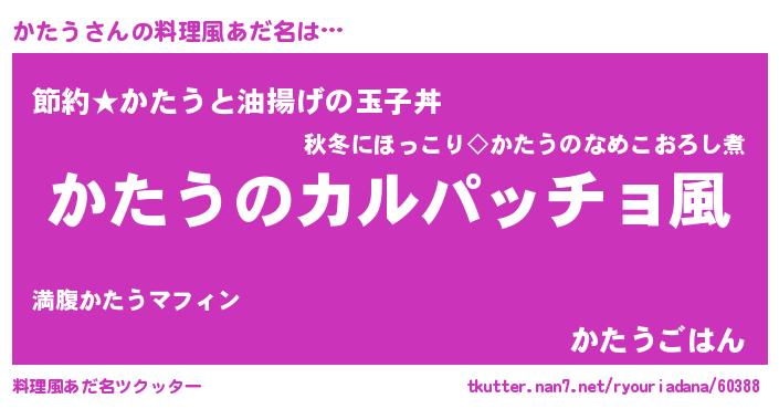 | ヒーロー風カッコイイあだ名 | 『仮面カタダー』『スーパーカタウ』 |