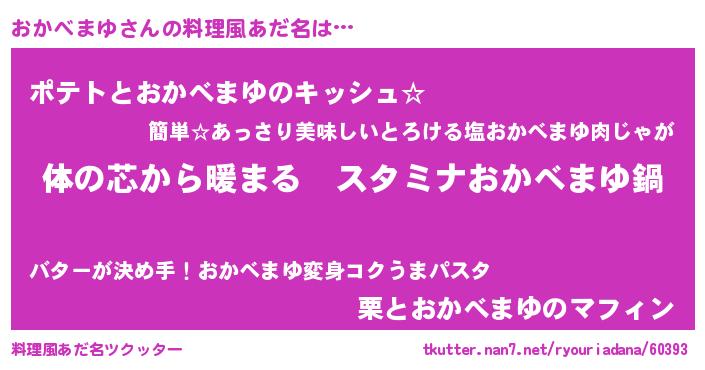| 欧米人風あだ名 | 『おかべまゆクリステル』 |