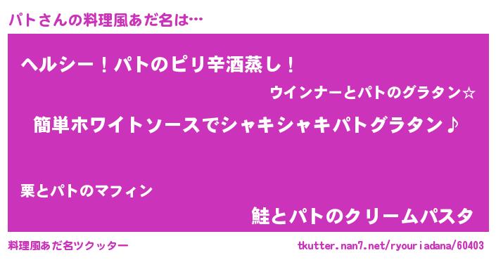 | ポケモン風あだ名 | 『ヒパト』『パトセウス』『パトダネ』 |