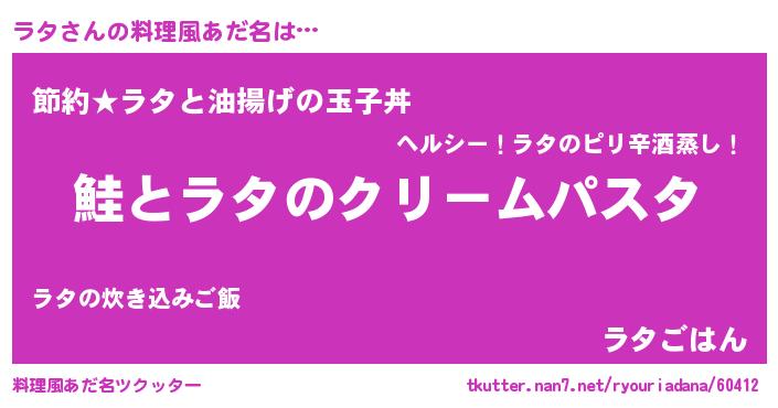 | 女子向けラノベタイトル風あだ名 | 『死神ラタの再婚』『ラタ姫と円卓の騎士』 |