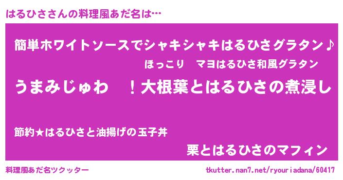 | ポケモン風あだ名 | 『ハルヒダネ』『ヒハルヒサ』 |