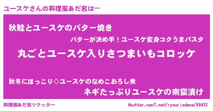 | 男性向けラノベタイトル風あだ名 | 『この素晴らしい世界にユースケを!』 |