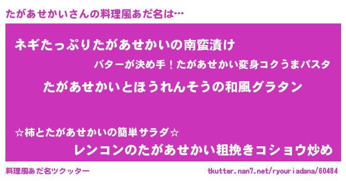 | 欧米人風あだ名 | 『トリンドルたがあせかい』 |