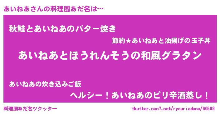| ヘコむあだ名 | 『あいねあ(笑)』『あいにー』 |