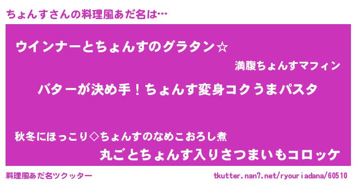 | 女子向けラノベタイトル風あだ名 | 『ちょんす恋絵巻』『ちょんす伯爵の花嫁』 |