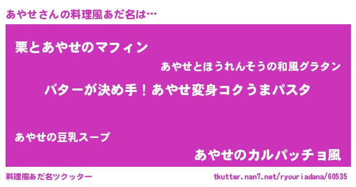 | ヘコむあだ名 | 『あやっ子』『豆乳』『あやせ(苦笑)』 |