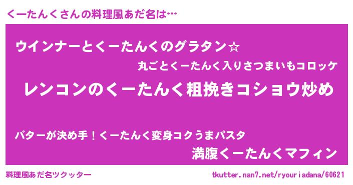 | 意味不明あだ名 | 『自称くーたんく』『永久保存くーたんく』 |