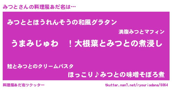 | ヘコむあだ名 | 『酢こんぶ』『みつにゅー』 |