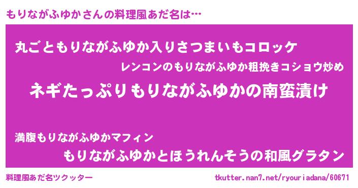 | 恥ずかしいあだ名 | 『プリティーもりながふゆか』『もりちん』 |