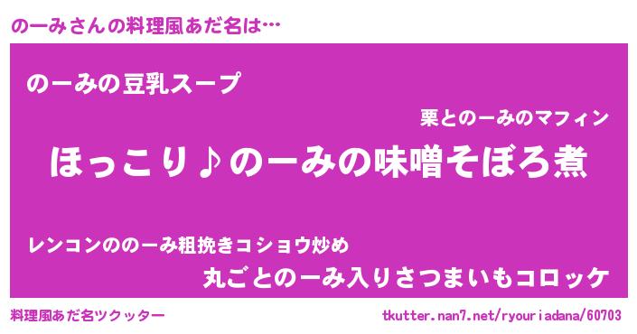 | 男性向けラノベタイトル風あだ名 | 『のーみの憂鬱』『魔弾の王とのーみ』 |
