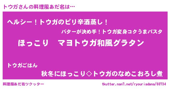 | ヒーロー風カッコイイあだ名 | 『仮面トウダー』『最強戦士トウガ』 |