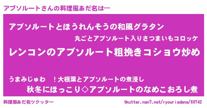| 女子向けラノベタイトル風あだ名 | 『アブソルートなんてお断りですっ。』 |