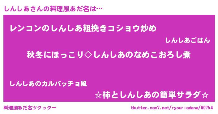 | 意味不明あだ名 | 『自称しんしあ』『たけのこ科しんしあ属』 |