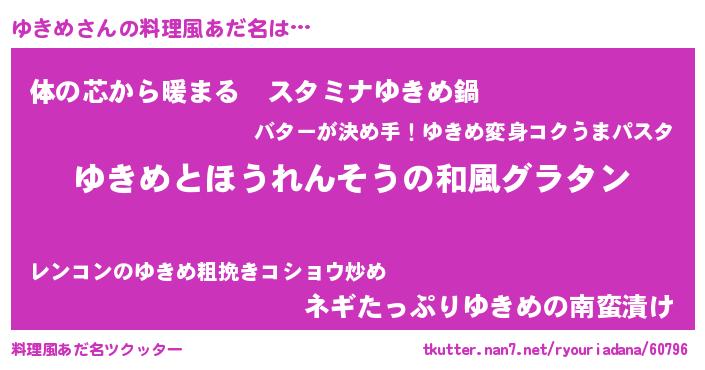 | 男性向けラノベタイトル風あだ名 | 『転生したらゆきめだった件』 |