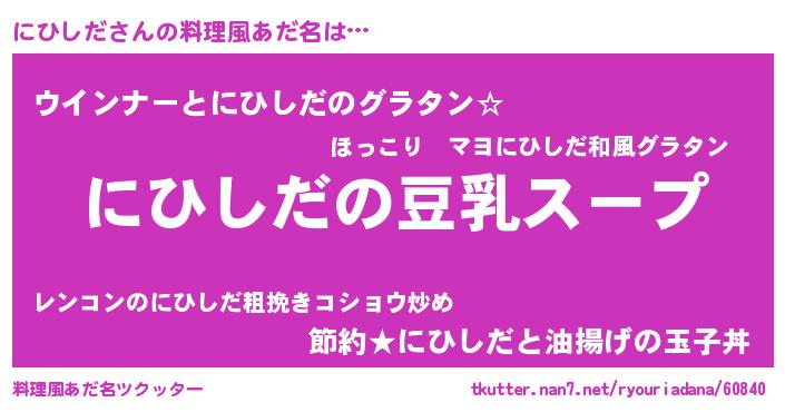 | ポケモン風あだ名 | 『ヒニヒシダ』『ニヒシダネ』 |