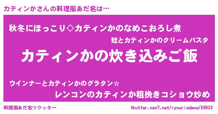 | ヒーロー風カッコイイあだ名 | 『最強戦士カティンカ』『仮面カテダー』 |