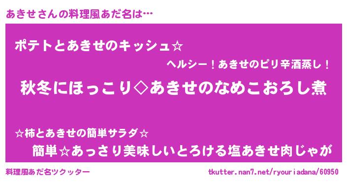 | ヘコむあだ名 | 『あきぷりん』『あきせ(笑)』 |