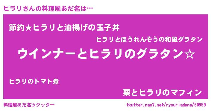 | 恥ずかしいあだ名 | 『ヒラっちょ』『プリティーヒラリ』 |