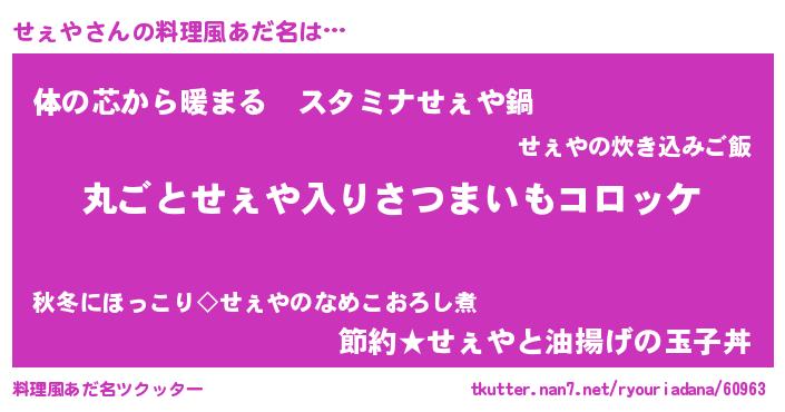 | 男性向けラノベタイトル風あだ名 | 『魔弾の王とせぇや』『せぇやの憂鬱』 |