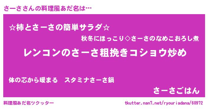 | 女子向けラノベタイトル風あだ名 | 『さーさなんてお断りですっ。』 |