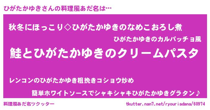 | 女子向けラノベタイトル風あだ名 | 『死神ひがたかゆきの再婚』 |