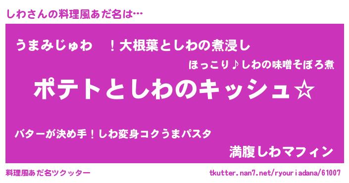 | 女子向けラノベタイトル風あだ名 | 『しわの卵を拾いまして』『しわの婚約者』 |